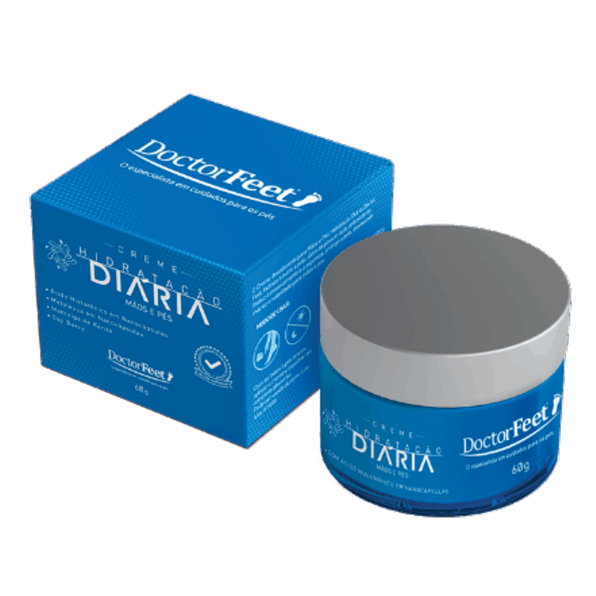 Contendo 60g, versão em pote é perfeita para deixar em casa, para fazer seu tratamento quando quiser. Benefícios que só o Hidratação Diária Doctor Feet proporciona: Ação antienvelhecimento e antirrugas, Hidratação e Nutrição Reduz a aspereza de suas mãos e pés. Ação antioxidante Mãos e pés macios e protegidos Mãos e pés saudáveis, suaves e lisinhos